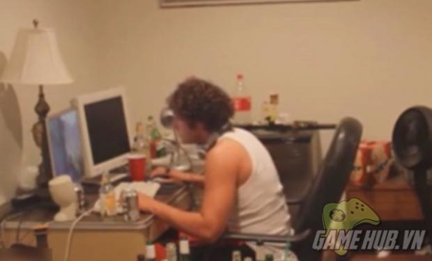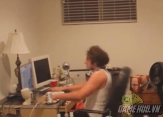 Mới đầu anh chàng còn rất yên tĩnh chơi game.