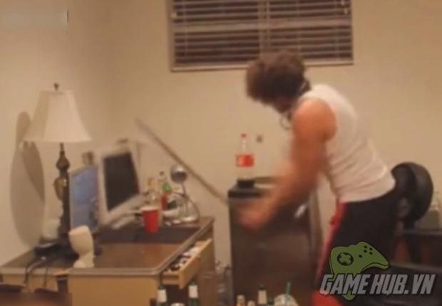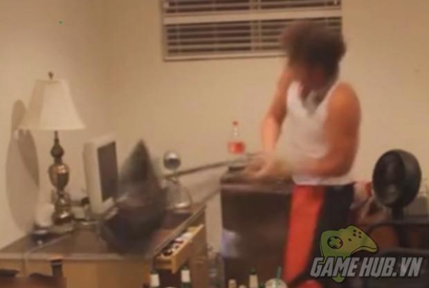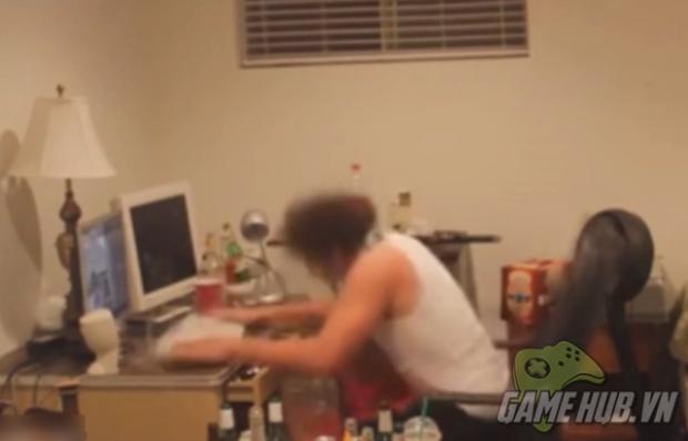 Vốn tưởng thế là xong, ai dè anh chàng lại tiện tay cầm cây gậy bên cạnh, điên cuồng đập cái máy tính.