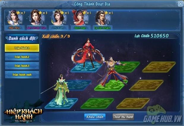 Là tính năng khá thú vị dành cho người chơi có nhân vật từ cấp 34 trở lên. Người chơi công thành với trận hình tối đa 3 Hiệp khách, khi chiếm thành thành công, Hiệp khách công thành sẽ trở thành thủ thành.