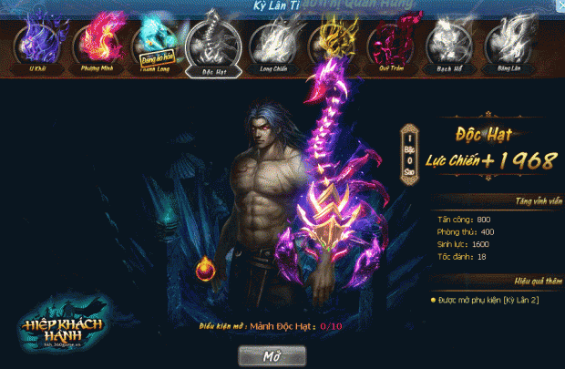 webgame đánh theo lượt dựa trên nguyên tác cùng tên của Kim Dung. Game có đồ họa 2,5D, hình ảnh tinh tế, bắt mắt, tương tác hoàn thiện với các hoạt động chiến đấu như Võ Lâm Tranh Bá, Hiệp Khách Lệnh, Kinh Mạch, Cánh, phó bản phong phú bao gồm cốt truyện-kinh nghiệm-treo máy… Trận hình giao chiến linh động, đa dạng với 9 vị trí chiến đấu, hệ thống thú cưng, thú cưỡi, hiệp khách, mỹ nhân, thần binh… sẽ là các yếu tố làm nên sự khác biệt của người chơi Hiệp Khách Hành.Click to expand...