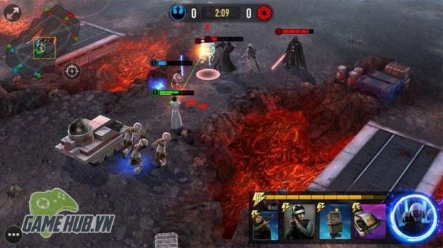 Star War: Force Arena có điểm nhấn là phong cách MOBA với lối chơi xoáy sâu vào PvP. Tại đây, bằng việc lựa chọn giữa hai phe 'Nổi Dậy' hoặc 'Đế Chế', game thủ sẽ hòa mình vào các trận chiến sống còn diễn ra theo thời gian thực.