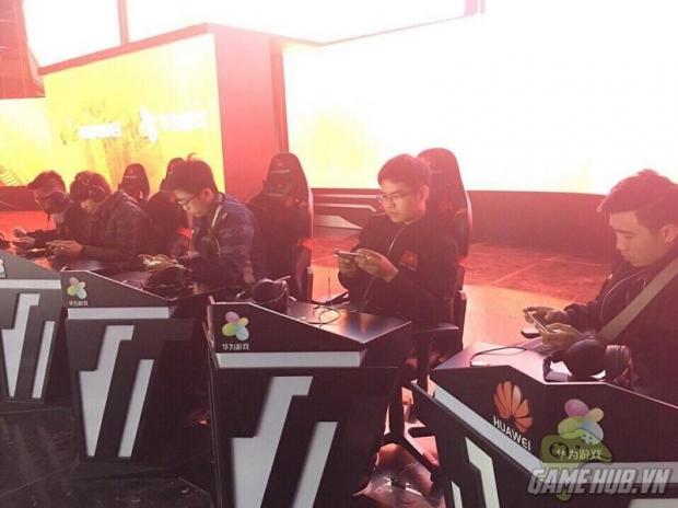 Các thành viên làm quen với thiết bị thi đấu Huawei Mate9