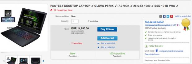 Mới đây, một cửa hàng chuyên laptop gaming tại Đức với tên gọi CEG-hardcorecustom đã đăng lên trang ebay của mình những hình ảnh cũng như cấu hình của chiếc máy CLEVO P870X. Nếu như thiết kế mạnh mẽ đậm chất gaming kế thừa từ thế hệ trước kết hợp với cấu hình cực kì ấn tượng vẫn chưa đủ để làm bạn chú ý, thì mức giá dự kiến 15.000 euro chắc chắn sẽ khiến bạn phải tò mò.
