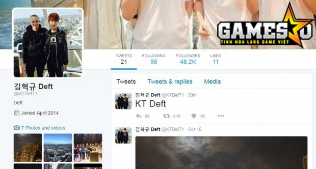 KT vừa mới công bố rằng họ đã ký hợp đồng với xạ thủ Kim 'Deft' Hyuk-kyu cho đội hình thi đấu ở mùa giải 2017 sắp tới. Cựu thành viên của EDward Gaming và Samsung Blue đã tweet “KT Deft” ngay sau khi thông báo được phát đi, và đã thay đổi luôn tên gọi trên Twitter.