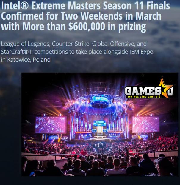 “Tháng Ba vừa rồi, chúng tôi nghĩ chúng tôi cần hai đấu trường để thực sự đáp ứng được số lượng người muốn xem những game thủ giỏi nhất thế giới tranh tài tại Intel Extreme Masters”, Blicharz nói. “Chúng tôi rõ ràng là không thể xây dựng một đấu trường thứ hai trong nhà, nên chúng tôi mở rộng giải đấu Chung kết Thế giới diễn ra lâu hơn hai ngày cuối tuần có nhiều sự kiện eSports lớn.”