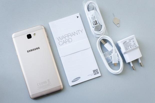 Galaxy J5 Prime có hai màu vàng và đen xám giống Galaxy J7 Prime. Phụ kiện đi kèm theo máy có tai nghe thường, cáp, dụng cụ lấy sim và sạc tiêu chuẩn có dòng ra 1A.