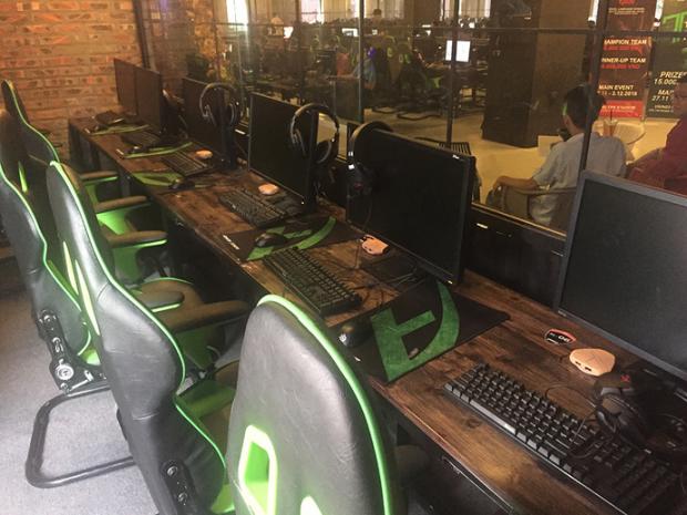 Cùng với đó nếu chơi game mệt, bạn có thể ra khu vực chính giữa phòng máy nơi bàn ghế được sắp xếp như một quán cafe, vừa phục vụ ăn uống, vừa cho phép game thủ theo dõi các giải đấu tổ chức tại đây.