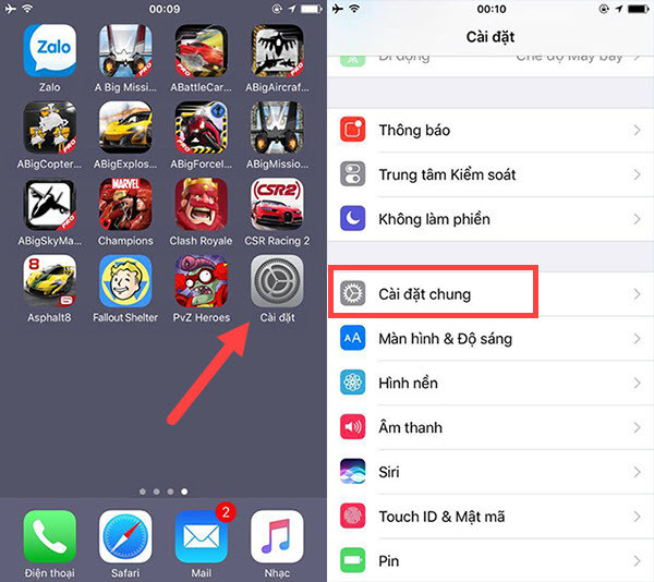 Để xem dung lượng bộ nhớ còn trống bạn vào Cài đặt > Cài đặt chung.