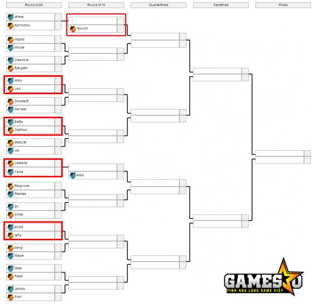 - Bảng đấu được sắp xếp một cách ngẫu nhiên, nhưng tất cả các trận đấu ở vòng đầu tiên đều là giữa một tuyển thủ thuộc Đội Băng với một tuyển thủ thuộc Đội Hỏa.