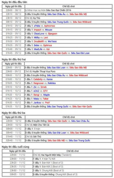 LỊCH THI ĐẤU CỦA ASE 2016 THEO GIỜ VIỆT NAM