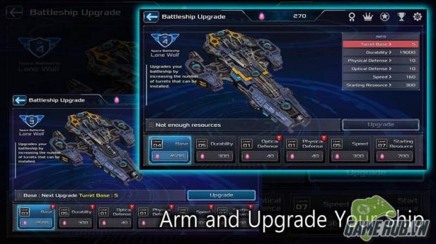 Game thủ sẽ có nhiều lựa chọn để nâng cấp tàu không gian khi đang thực hiện trò chơi. Cụ thể, bạn có thể chọn lựa các chi tiết cần loại bỏ và thêm vào những chi tiết đáng có để làm cho con tàu thêm ổn định. Ngoài ra, người chơi cũng có nhiều lựa chọn về các khía cạnh khác như tốc độ, kiểu phòng thủ vật lý hay quang học và độ bền tổng thể. Để thưởng thức Battleship Lonewolf: Space TD, mời bạn tải game theo đường dẫn sau đây: