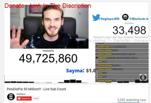 Bằng chứng là kể từ khi PewDiePie đưa ra tuyên bố gây sốc nói trên, trên YouTube cũng như các mạng xã hội bắt đầu xuất hiện nhiều video trực tiếp với nội dung... đếm số lượng sub của PewDiePie theo thời gian thực. Chỉ có một dãy số duy nhất liên tục tăng lên giảm xuống rất nhàm chán nhưng mỗi khi click vào những kênh này, gần như lúc nào chúng ta cũng thấy có vài nghìn người đang theo dõi. Điều này thể hiện sự quan tâm lớn của cộng đồng tới số phận của kênh PewDiePie trong tương lai gần khi nó đạt mốc 50 triệu sub.