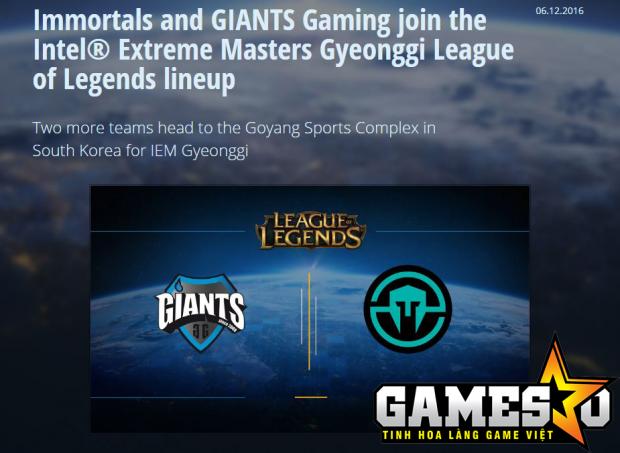 IMT và GIANTS đã được lựa chọn để lấp đầy khoảng trống tại giải đấu IEM Gyeonggi Mùa XI, theo thông báo chính thức của BTC ESL vào tối qua (06/12).