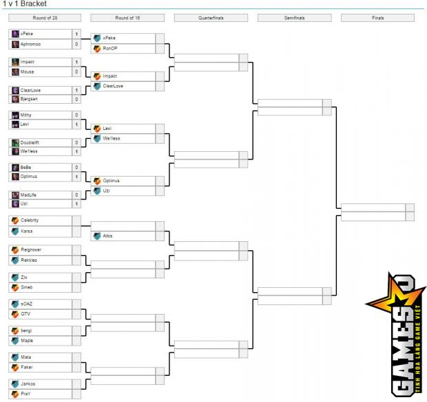 Điểm nhanh năm cặp đấu solo 1v1 ở Ngày thi đấu khai mạc ASE 2016: xPeke đánh bại aphromoo và sẽ gặp RonOP ở vòng 1/16, Impact hạ Mouse sau tình huống xử lý đầy nhạy cảm với Olaf, Clearlove khiến Bjergsen trở thành cựu vương, trong khi hai Siêu Sao Trung Quốc là We1less và Uzi đều tỏ ra vượt trội hoàn toàn so với Doublelift cùng MadLife.