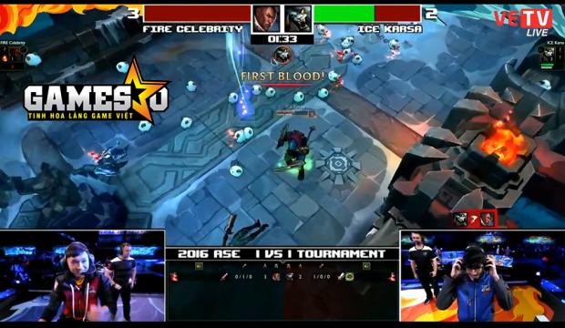 Tuy nhiên, niềm vui không được trọn vẹn với đội tuyển Siêu Sao Việt Nam, khi mà trước đó ít phút, Celebrity đã dễ dàng bị Karsa của Siêu Sao Đài Loan vượt qua sau khi bộ đếm giờ đang hiên thị 01:33. Rengar của Karsa đã tận dụng được tối đa khả năng dòn sát thương khủng khiếp và Điểm Hung Tợn từ trong bụi đẻ liên tục uy hiếp và kết liễu Lucian trong tay Celeb chỉ sau hai lần nhảy.