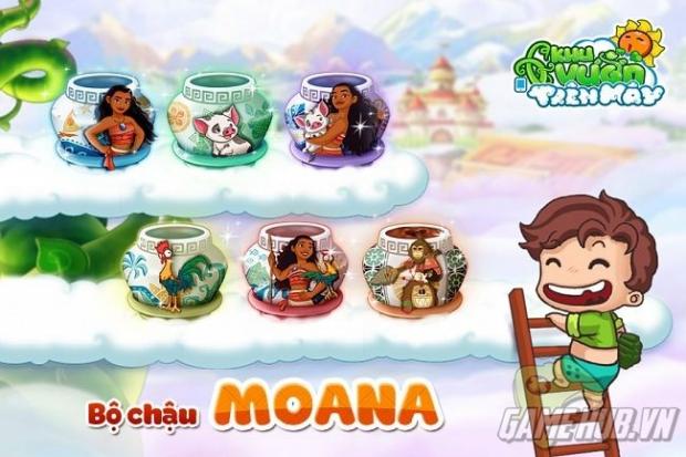 Cụ thể, bên cạnh bộ chậu Mickey & Friends vừa ra mắt, các fan yêu mến cô công chúa “mới toanh” Moana hoàn toàn có thể sở hữu bộ chậu xinh đẹp in hình cô tại sự kiện “BBQ Cuối Tuần” (15.12 - 18.12) và “Gió Đông Ấm Áp” (20.12 - 23.12) diễn ra trong game.