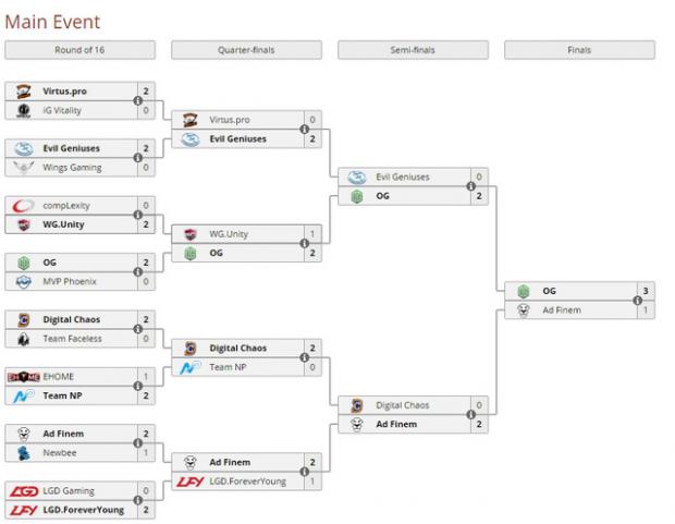 Tại giải đấu lần này, OG bước đến ngôi vô địch mà không để thua bất cứ game đấu nào kể từ vòng loại. Với chiến thắng này, Ana (tên thật Anthan Phạm) chính là game thủ gốc Việt đầu tiên vô địch một giải đấu DOTA 2 do Valve tổ chức.