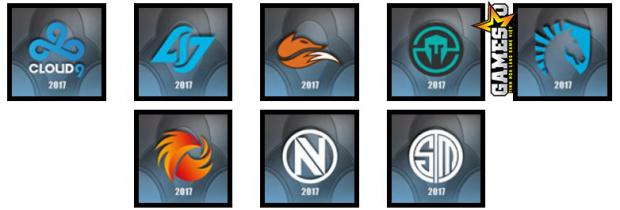 LCS Bắc Mỹ: Cloud9, Counter Logic Gaming, Echo Fox, Immortals, Team Liquid, Phoenix1, Team Envy, Team SoloMid.