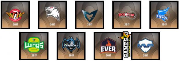 LCK Hàn Quốc: SK Telecom T1, ROX Tigers, Samsung Galaxy, KT Rolster, Afreeca Freecs, Jin Air Green Wings, Longzhu Gaming, ESC Ever, MVP.