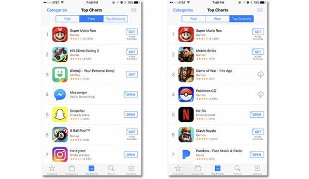Chỉ vài giờ sau khi ra mắt, tựa game Super Mario đã đứng top 1 ứng dụng miễn phí trên App Store. Đó thực sự là một vị trí tốt, tuy nhiên điều đáng kinh ngạc hơn là dù được phép tải về miễn phí, Super Mario Run vẫn đang chễm chệ trên vị trí số 1 trong top các ứng dụng có doanh thu cao nhất App Store, vượt mặt cả những tựa game di động đình đám hiện nay như Pokemon GO và Clash Royale.