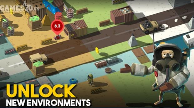 Khi nhân vật đạt được đủ điều kiện như cấp độ và tiền thì sẽ có thể mở khóa thêm nhiều nhân vật mới. Các màn chơi được thiết kế để bạn trải nghiệm game một cách liền mạch, hoàn thành một màn xong rồi chọn phần thưởng và lại tiếp tục chơi màn kế tiếp, các màn chơi trong Bomb Hunters không chia ra thành các màn riêng như nhiều game nhập vai khác.