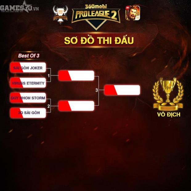 Hai chiến đội Quy Nhơn Storm và ViruSs Eternity sẽ phải tranh tài với 3Q Saigon và Saigon Jokers - Chiến đội lấy tên theo đội tuyển LoL huyền thoại vừa giải tán để dành vé thi đấu chung kết tại Đại hội 360mobi vào 25/12 tới đây. Liệu, các “ông lớn” có giữ được vị trí của mình giành được ngôi vô địch 360mobi Pro League 2 đầy danh giá hay các “chú ngựa ô” lại lên tiếng?