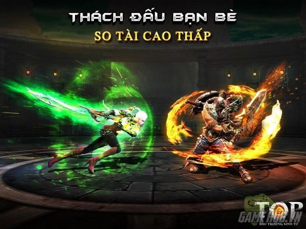 Top – Đấu Trường Sinh Tử đã tái hiện lại sự khốc liệt đó thông qua hệ thống Đấu Trường La Mã khắc nghiệt và ấn tượng. Đây là một cuộc chiến sinh tồn đúng nghĩa khi người chơi phải giao đấu lần lượt 15 đại đấu sĩ. Mỗi vòng đấu, bạn sẽ phải tiêu diệt từng người và tiếp tục cho đến đấu thủ cuối cùng hoặc cho đến khi nhân vật của bạn nằm xuống, bởi càng về vòng cuối thì đối thủ sẽ càng mạnh và thiện chiến hơn.