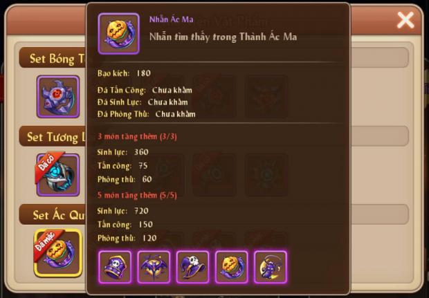 Khi mặc đủ 5 món theo bộ sẽ được kích hoạt thuộc tính ẩn 5 món