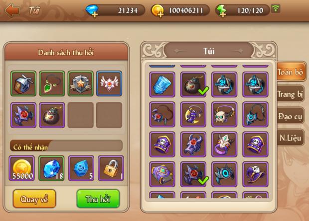Khi trang bị, vật phẩm của xạ thủ đầy túi hoặc thừa muốn bán đi thì có thể sử dụng chức năng thu hồi