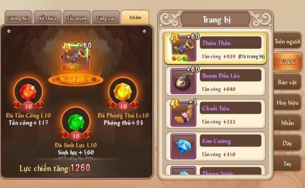 - Mỗi trang bị có 3 ô khảm nạm đá quý.