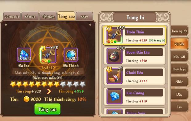 - Tăng sao có tỷ lệ thành công, tỷ lệ thành công sẽ giảm dần theo cấp tăng sao.