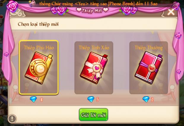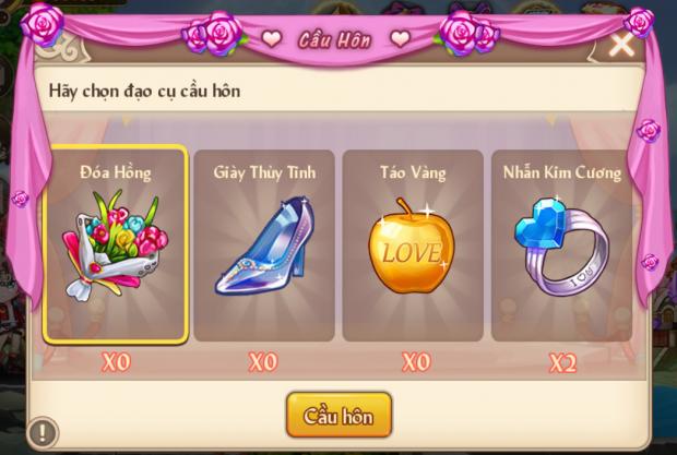 Chọn tín vật cầu hôn, sau đó nhấn cầu hôn.