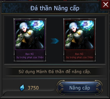 - Nguyên liệu nâng cấp là Mảnh Đá Thần. Nâng cấp xong Đá Thần sẽ lên 1 đẳng cấp mới: