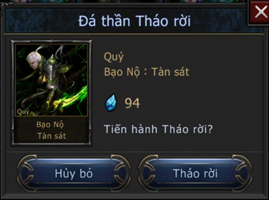 - Tháo rời Đá Thần dùng để chuyển những đá thần không sử dụng thành các Mảnh Đá Thần.