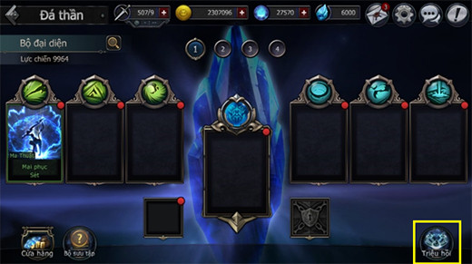 - Để có Đá Thần. Bạn hãy sử dụng chức năng 'Triệu Hồi':