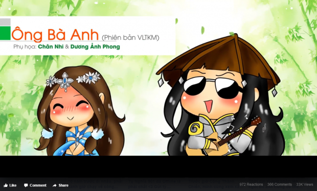 Đầu tiên phải kể đến clip chế lời từ ca khúc hit “Ông Bà Anh” (Lê Thiện Hiếu) do một game thủ Võ Lâm Truyền Kỳ Mobile thực hiện. Ông Bà Anh phiên bản VLTK Mobile kể về câu chuyện tình đáng yêu trong game, với lời hát vô cùng đáng yêu. Ngay lập tức, ca khúc này nhận được hơn 33k lượt xem trên fanpage Võ Lâm Truyền Kỳ Mobile.