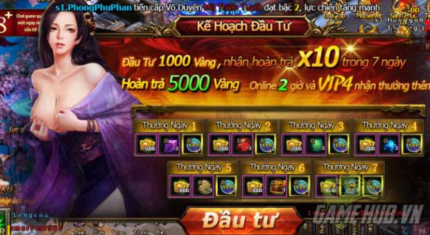 Bất kể người chơi nào cũng nhận được rất nhiều lợi ích khi tham gia trải nghiệm. Lợi ích lớn nhất mà Vũ Cực dành tặng cộng đồng là Kế Hoạch Đầu Tư, chỉ với một số tiền nho nhỏ nhưng người chơi sẽ liên tiếp nhận được rất nhiều hoàn trả kéo dài trong tận 7 ngày. Đây là món quà không thể lớn hơn mà mỗi người chơi nếu muốn đều có thể nhận được.