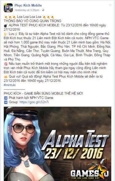 Ngày hôm nay (23/12), người chơi đã được trải nghiệm phiên bản Alpha Test của tựa game Phục Kích Mobile (PKM) do VTC Game phát hành tại Việt Nam, theo thông báo của NPH trên các phương tiện truyền thông vào ngày hôm qua (22/12). Thế nhưng, trái với thông báo chỉ có “1,000 game thủ may mắn” được mời trải nghiệm, thì bất cứ ai có đường dẫn tải game đã bị lộ vào rạng sáng ngày hôm nay ở cả hai hệ điều hành iOS và Android đều có thể đăng nhập vào game.