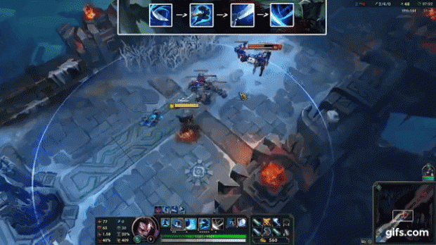 5. Nếu bạn dùng (E) khi (Q) đang có khoảng 0.55s hoặc nhỏ hơn thời gian hồi chiêu. Mỗi lần lướt xong bạn sẽ có thể dùng Q lại ngay lập tức