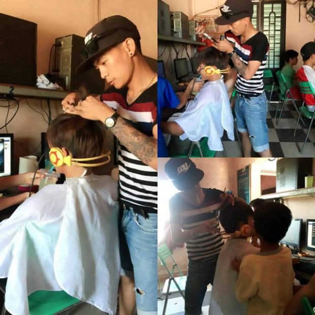 Thợ cắt tóc hành nghề ngay tại quán net.