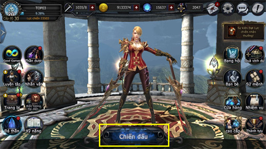 + Tại giao diện chính bạn hãy chọn 'Chiến đấu':
