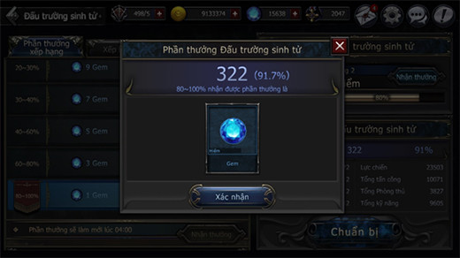 Thể lực Đấu trường sinh tử cứ mỗi 20 phút sẽ hồi phục 1 điểm.