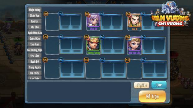 Vạn Vương Chi Vương có tới 9 vị trí xếp quân và hiển thị khắc chế rất trực quan, dễ hiểu