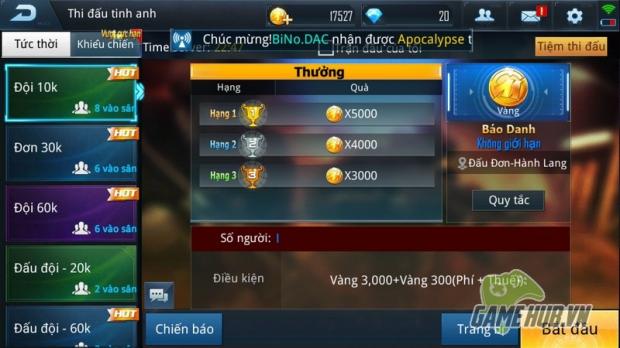 Với chế độ này, người chơi sẽ được tham gia một giải đấu online in-game, các trận đấu không bị ảnh hưởng nhiều bởi cấp vip, items mà dựa vào kỹ năng và bản lĩnh của các game thủ là chính. Tournament được thể hiện giống như một giải đấu eSports thực thụ, tuy nhiên được vận hành hoàn toàn do game thủ và hoàn toàn mở cửa tự do cho bất kỳ game thủ nào muốn tham gia.