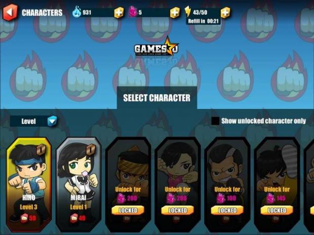 Game không có nút ảo phục vụ di chuyển vì nhân vật chính của chúng ta đứng cố định ở trung tâm, các phím ảo sẽ có vai trò tung những đòn đánh cơ bản và chiêu thức đặc biệt. Người chơi chỉ việc vuốt lên màn hình cảm ứng về phía hướng có đối phương lao tới để hạ gục kẻ địch, lực đánh của võ sĩ sẽ phụ thuộc một phần vào những lần thao tác.