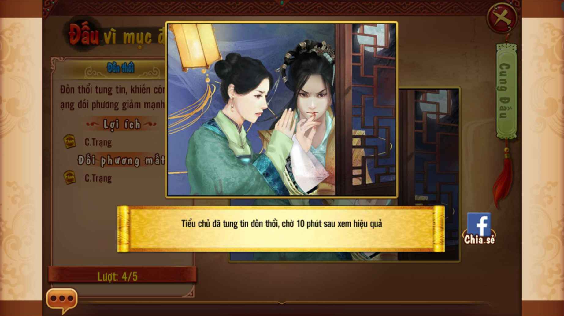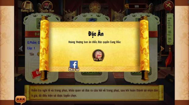 Bắt đầu tính từ lúc nhập cung, qua mỗi cấp quan, các tiểu chủ sẽ học được thêm các kỹ năng cung đấu khá thú vị như Véo Má, Thỉnh An, Viếng Thăm, Lì Xì ...