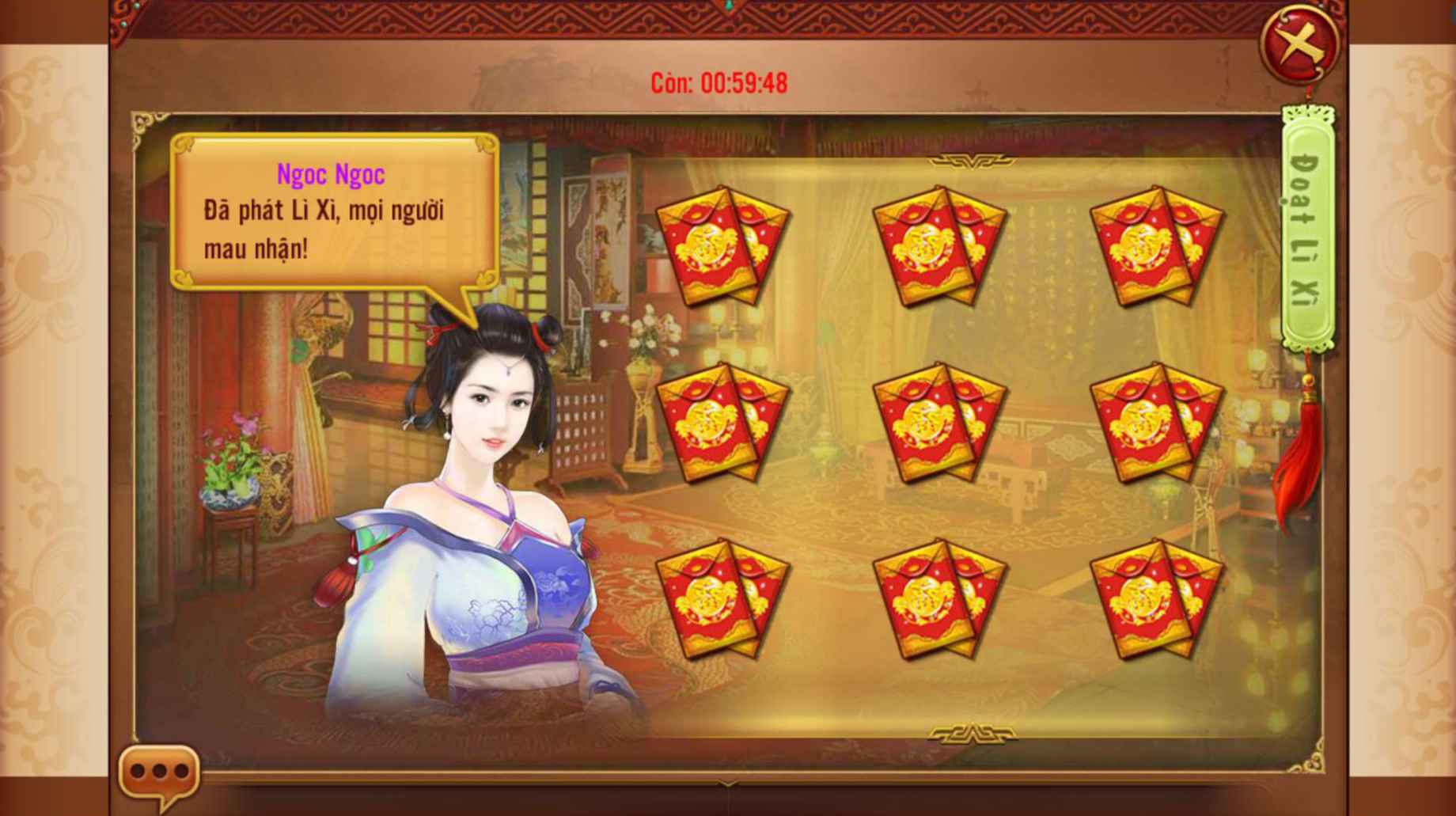 PHÁT LÌ XÌ là tính năng phát tiền cho người chơi khác trong cùng server. Tiểu chủ khi đủ cấp quan sẽ mở được tính năng này, sau khi sử dụng tiểu chủ sẽ được tăng Mị Lực, còn người chơi khác sẽ được nhận vàng ngẫu nhiên từ việc rút bao lì xì.