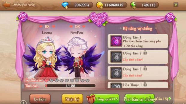 Với tính năng này, GunPow sẽ mở nhiệm vụ cho vợ chồng, vợ chồng cùng nhau hoàn thành để nhận thưởng. Các cặp có thể cùng nhau vượt phó bản để nhận thưởng nhiều hơn và tăng tình cảm của nhau. Nhớ là phải “đồng vợ đồng chồng” mới vượt qua được phó bản này!