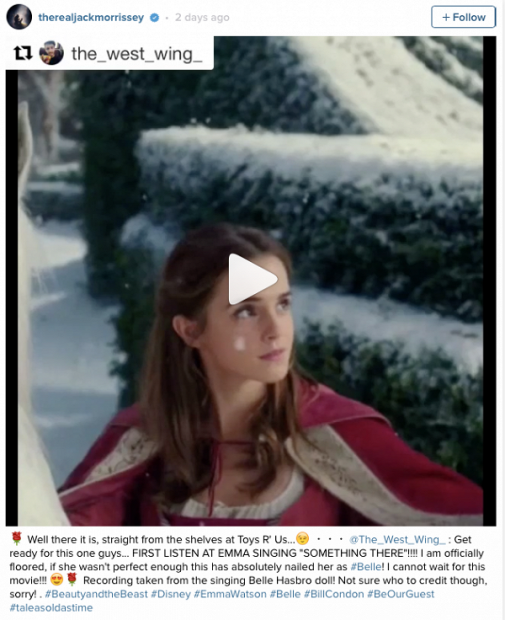 Đoạn audio đầu tiên của soundtrack phim Beauty And The Beast (Người đẹp và quái vật) cuối cùng cũng đã lên sóng trong sự phấn khích cực độ từ các fan. Bởi vì lần này, không phải là một ca sĩ hạng A nào thể hiện, mà nữ diễn viên trẻ Emma Watson – đảm nhiệm vai chính của phim đã có lần hiếm hoi khoe giọng hát của mình.