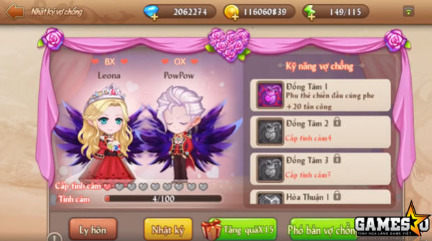 Với tính năng này, GunPow sẽ mở nhiệm vụ cho vợ chồng, vợ chồng cùng nhau hoàn thành để nhận thưởng. Các cặp có thể cùng nhau vượt phó bản để nhận thưởng nhiều hơn và tăng tình cảm của nhau. Nhớ là phải “đồng vợ đồng chồng” mới vượt qua được phó bản này!